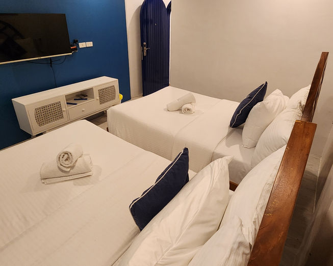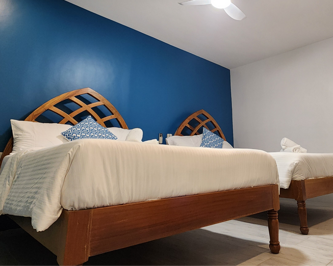 Perfect for families or small groups, the Artemis Room offers a spacious and welcoming retreat with a side view of the beach. Bright and airy, it provides plenty of room to unwind after a day of diving or exploring. With a serene atmosphere and comfortable amenities, the room is ideal for all travelers—including freedivers—looking to rest, recharge, and enjoy time together.